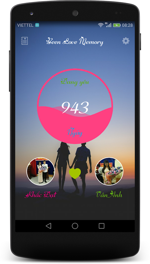 ► Been Love Memory - Dem ngay yeu 2016 tự hào là Ứng dụng đếm ngày yêu nhau ĐẦU TIÊN có ngôn ngữ Tiếng Việt và được phát triển cho người dùng Việt Nam.